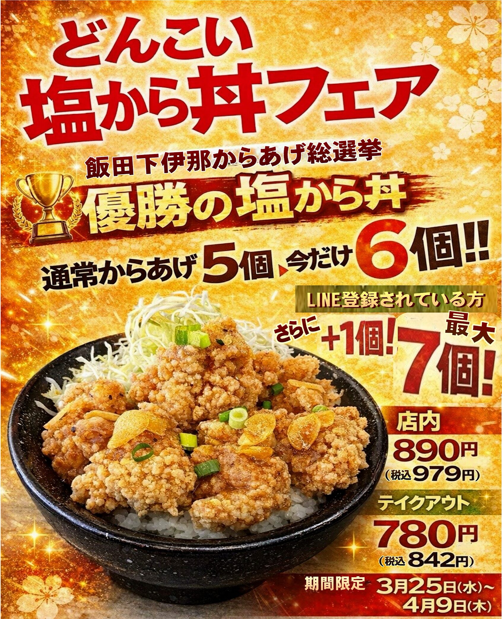 1/29、30で行われた「第二回飯田下伊那からあげ総選挙」で当店の「塩から(塩にんにく唐揚げ)」が優勝いたしました!!